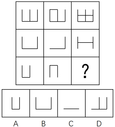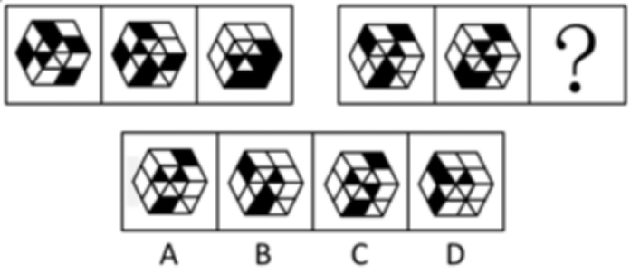 从所给的四个选项中选择最合适的一个填入问号处,使之呈现一定的规律:________。
