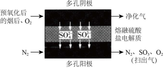 20世纪80年代Townley首次提出利用电化学膜脱除烟气中SO2:将烟气预氧化使SO2转化为SO3,再将预氧化后的烟气利用如图所示原理进行净化。下列说法正确的是()