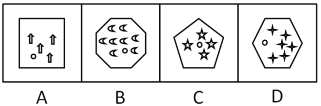(2011-北京)选项中包含4个图形,其中有3个呈现一定的规律性,但有1个例外,请将它找出来: