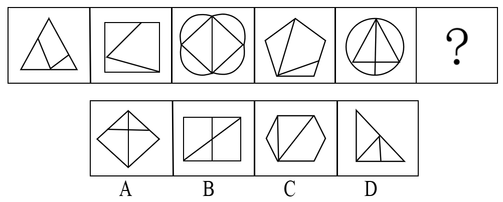 (2025-江苏)请从四个选项中选出最恰当的一项填入问号处,使题干图形呈现一定的规律性: