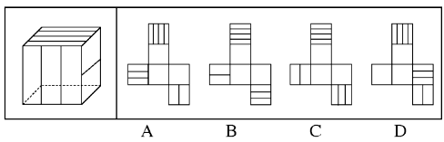 (2016-江苏)左边这个图形是由右边四个图形中的某一个作为外表面折叠而成,请指出它是哪一个?