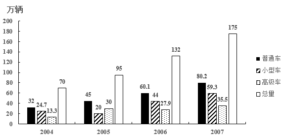 (2008-江苏C卷)材料:阅读下列材料,回答下面的题目。某地2004年至2007年乘用车保有量结构变化图