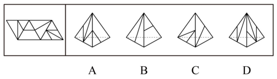 (2013-江苏)左边给定的是纸盒的外表面,下面哪一项能由它折叠而成?