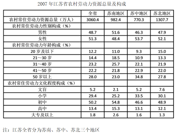 苏南地区21—40岁农村常住劳动力人口比苏中地区多()万人。 -