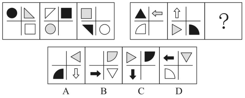 )从所给的四个选项中,选择最合适的一个填入问号处,使之呈现一定的规律性: